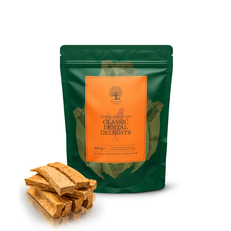 These dental sticks provide an effective solution for maintaining clean teeth without the use of grains, ensuring your dog’s diet remains balanced and healthy. Produced entirely according to the Behavioral Optimizing Food (BOF) principle, this treat is 100% grain-free and designed to promote overall well-being.