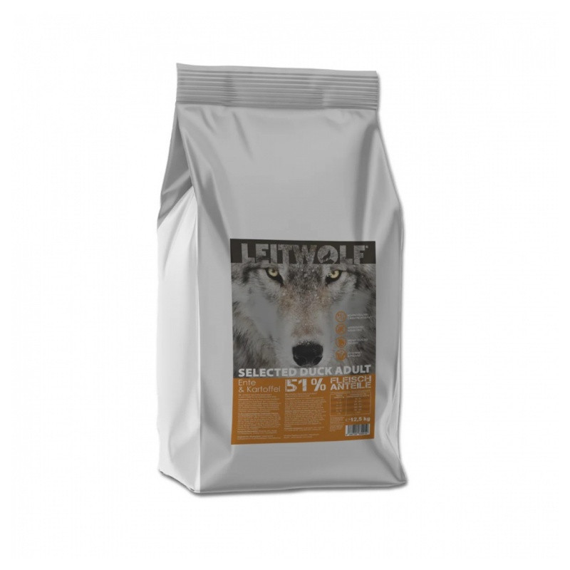 SELECTED DUCK ADULT is a healthy, complete and hypoallergenic food for adult dogs of all ages and breeds from the responsible German manufacturer LEITWOLF. Monoprotein food, therefore especially suitable for allergic dogs and dogs with a sensitive digestive tract.
