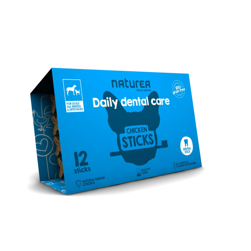 To combat tartar build-up and gingivitis, we’ve developed a line of dental sticks, free from chemicals or detergent agents. These delicious bars reduce these issues through mechanical action during chewing. They are crafted with 88% fresh fish and meat to also promote an healthy digestion. Just as we care for our own oral hygiene, we believe that a daily oral care is essential for your best friend’s well-being. Weight 200g