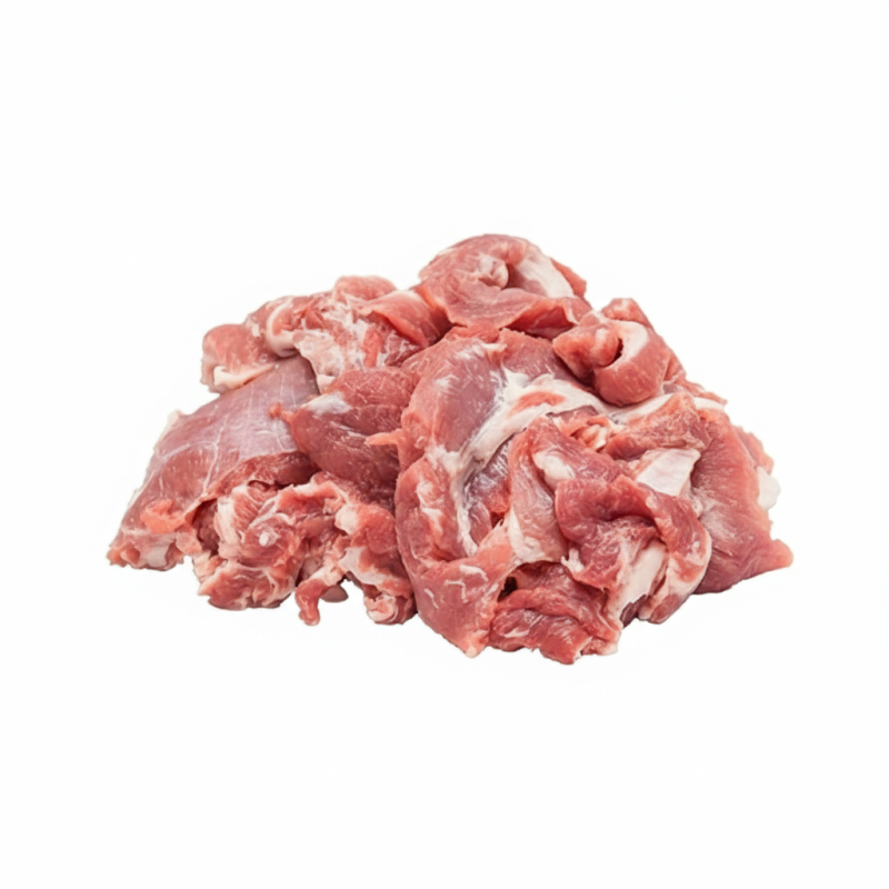 Pork trimmings are a mix of meat and organ scraps, including throats, bloodied meat, and offal