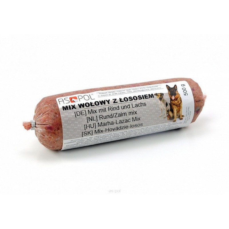 Aspol liellops ar lasi un dārzeņiem – BARF barība suņiem ar svaigu gaļu, lasi un vitamīniem bagātiem dārzeņiem. Nodrošina olbaltumvielas, omega-3 taukskābes un vitamīnus veselībai un dzīvībai.