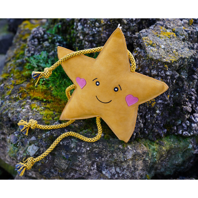 Zvaigznes formas rotaļlieta apvieno izturību, komfortu un ilgtspējību. Piemērota vilkšanai, košļāšanai un interaktīvām spēlēm, tā veicina aktivitāti un ir saudzīga pret zobiem un smaganām.
