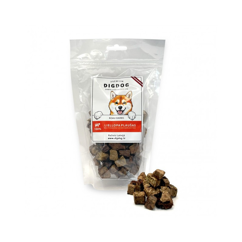 Neaizstājams produkts pastaigu un dresēšanas laikā. Kubiņi ir maza izmēra, tāpēc ar tiem grūti pārbarot suni. Tie nesmērējas, un tos nevajag lauzt. Žāvētas liellopu plaušas – produkts ar zemu kaloriju daudzumu, un tas ir labi sagremojams. Galvenā īpatnība – nesatur taukus un ogļhidrātus, bet satur daudz kvalitatīva olbaltuma.