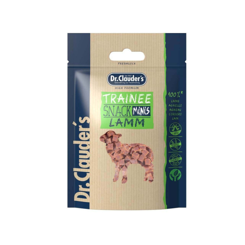 Dr. Clauder’s Trainee Snack Minis Jēra sastāv no 95% garšīgas jēra gaļas. Pateicoties saudzīgajai tvaika žāvēšanai, gaļa saglabā savu unikālo aromātu. Ar FOS.