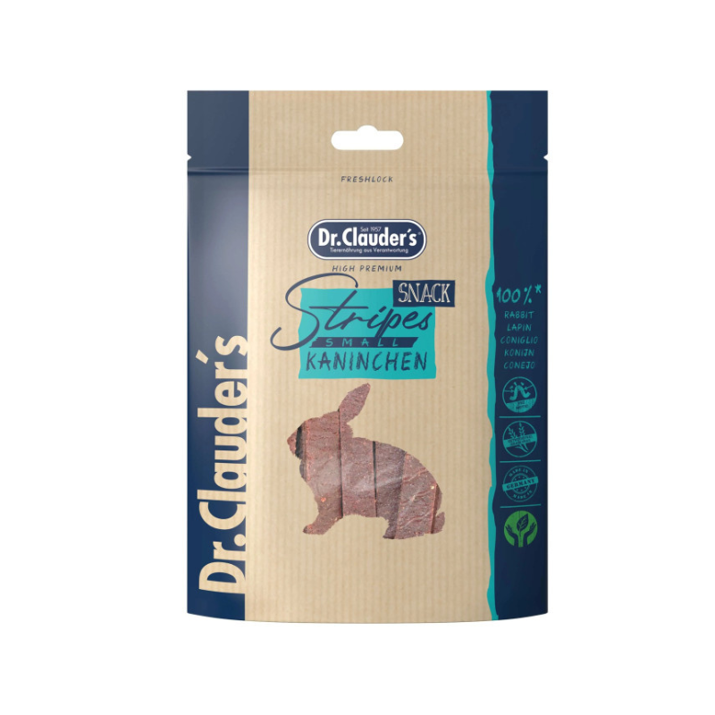 Pārbaudiet savu suni vai kaķi ar Dr. Clauder’s Truša gaļas Stripes Small 80g! Šie gardie našķi sastāv no 95% garšīgas truša gaļas un ir ideāli piemēroti ikdienas atlīdzībai un apmācībai. Pateicoties saudzīgajai tvaika žāvēšanai, gaļa saglabā savu unikālo aromātu, nodrošinot neatvairāmu garšu. Bagātināti ar fruktooligosaharīdiem (FOS), šie našķi atbalsta jūsu mājdzīvnieka gremošanu un kopējo labsajūtu. Dr. Clauder’s Truša gaļas Stripes ir ideāla izpriecu un veselības kombinācija.