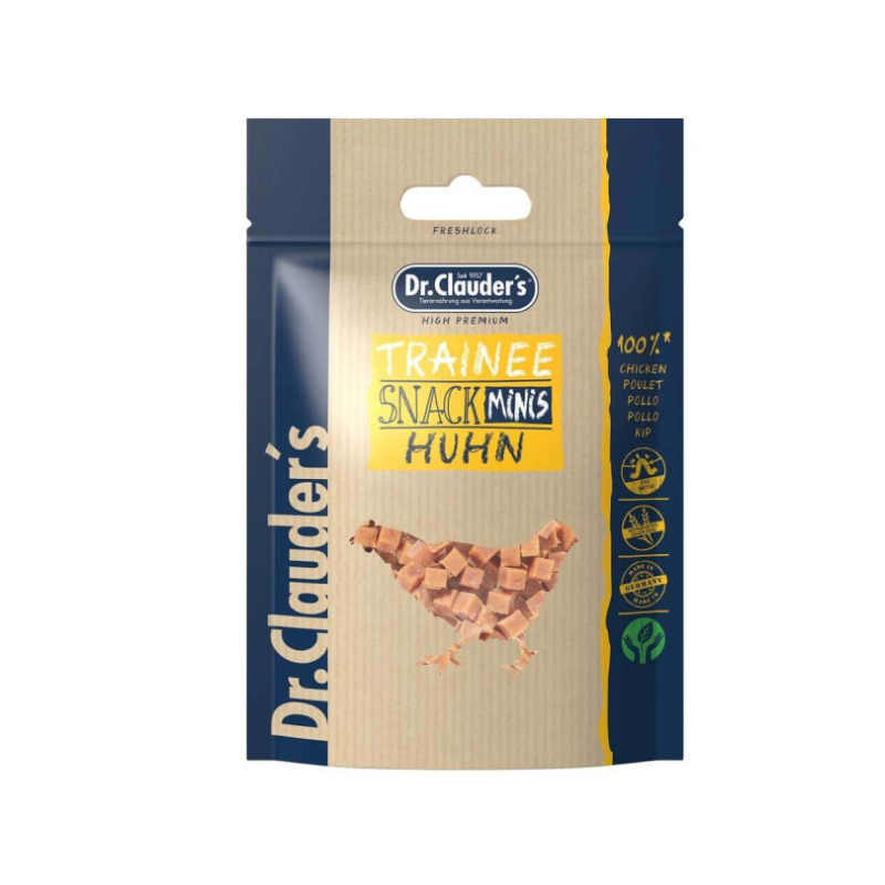 Dr. Clauder’s Trainee Snack Minis Vistas sastāv no 95% garšīgas vistas gaļas. Pateicoties saudzīgajai tvaika žāvēšanai, gaļa saglabā savu unikālo aromātu. Ar FOS.
