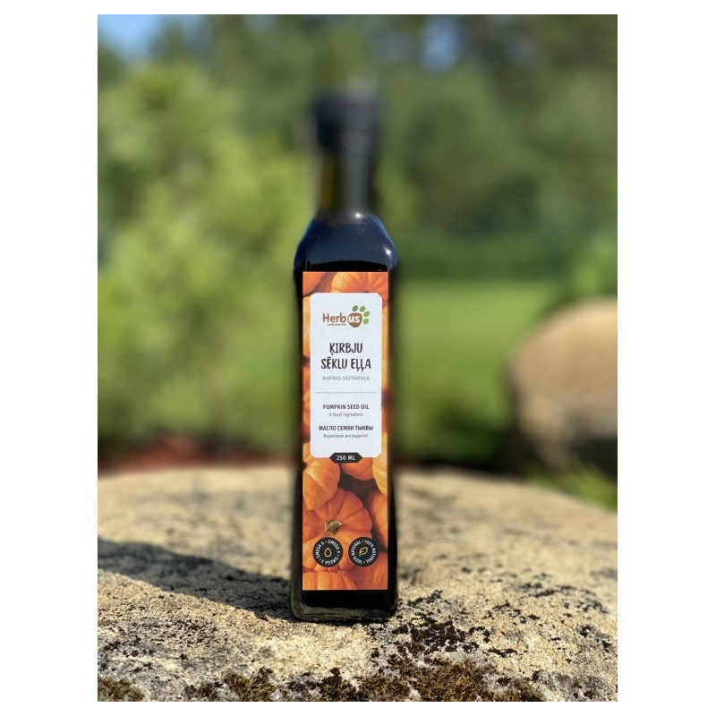 Ķirbju sēklu eļļa, auksti spiesta (100%). Nesatur krāsvielas, konservantus, sāli.
