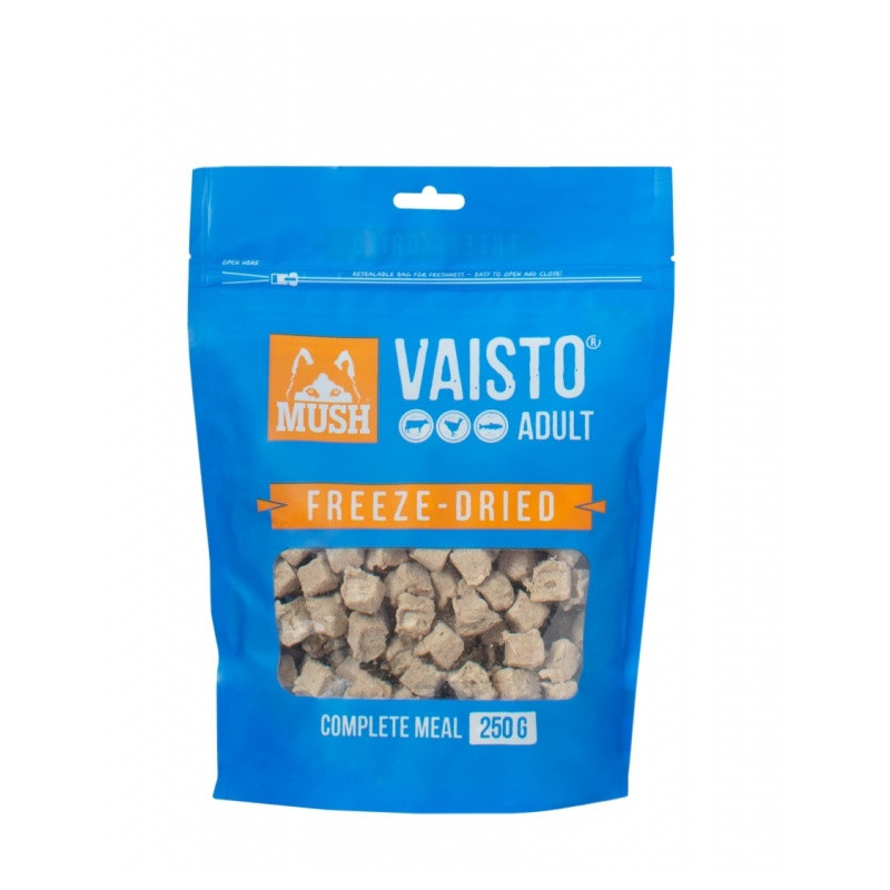 MUSH Vaisto Liofilizēta Pilnvērtīga Barība Pieaugušiem Suņiem – Liellops, Tītars, Lasis