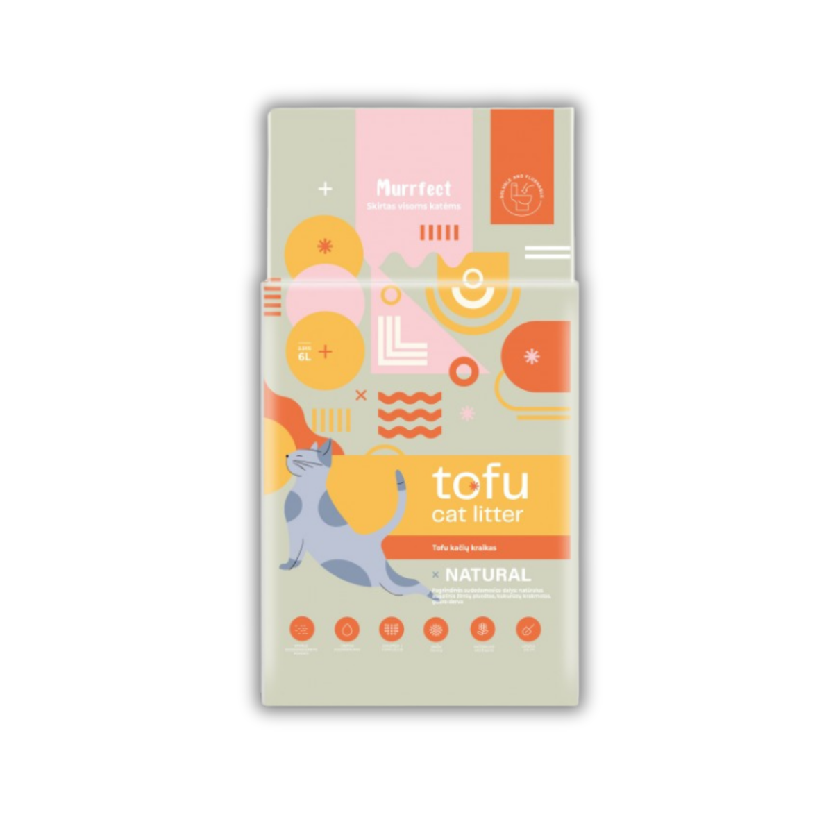 Murrfect tofu kaķu pakaiši, dabīgs aromāts (viegls vaniļas aromāts), bez putekļiem 6l