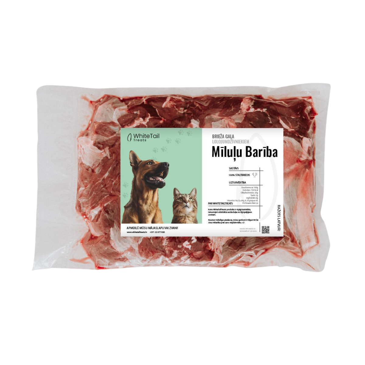 Brieža gaļa ir savvaļas gardums, kas paredzēts suņiem, kaķiem svaigēdājiem bez ierobežojumiem. 1kg