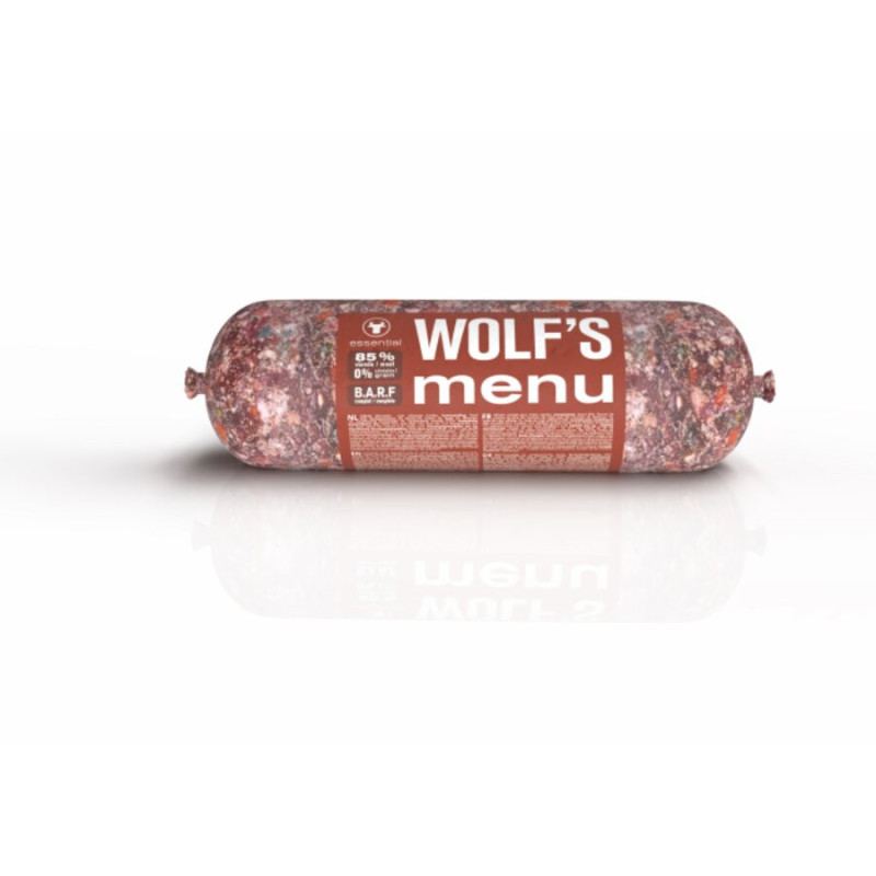 Wolf’s Menu – Essential barība satur tikai augstākās kvalitātes sastāvdaļas, kas iegūtas tieši no vietējām kautuvēm un ietver:
