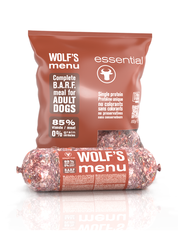 Wolf’s Menu – Essential barība satur tikai augstākās kvalitātes sastāvdaļas, kas iegūtas tieši no vietējām kautuvēm un ietver: