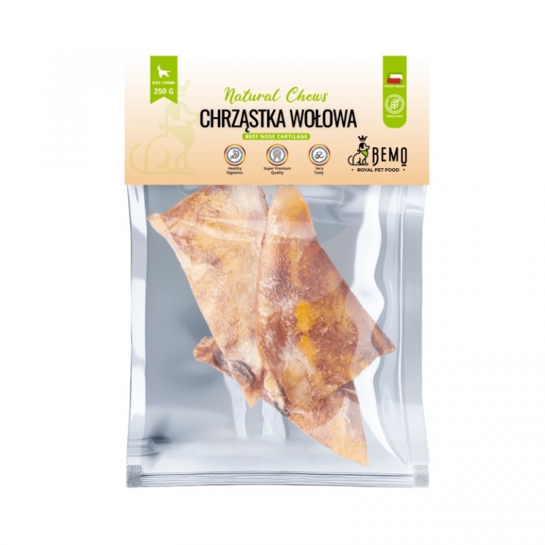 A natural, single-protein treat made from 100% beef nose cartilage. Free from artificial colours, preservatives, and flavour enhancers. Perfect for satisfying your dog’s natural chewing instinct — helps clean teeth, strengthen jaws, and massage gums. Rich in collagen, glucosamine, and chondroitin to support joint, skin, and coat health.