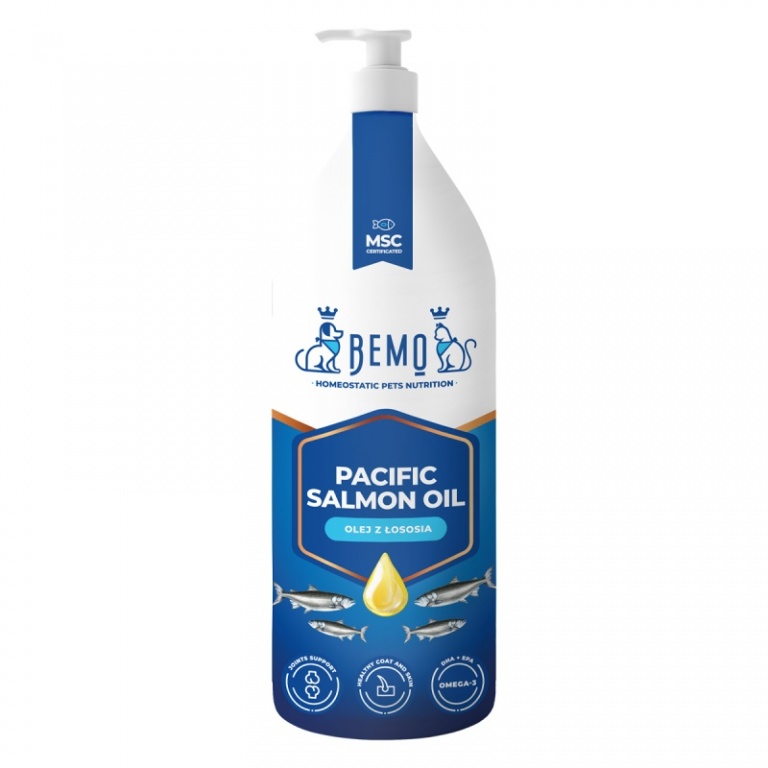 A premium-quality, pure oil from fresh Pacific salmon. The Bemo salmon oil is rich in EPA and DHA fatty acids. Omega-3 fatty acids provide excellent skin and coat condition, support healthy development in young animals, enhance musculoskeletal function, support the nervous system and improve cardiovascular system performance. It is an excellent supplement to the diet of dogs and cats at any age, regardless of the type of diet.