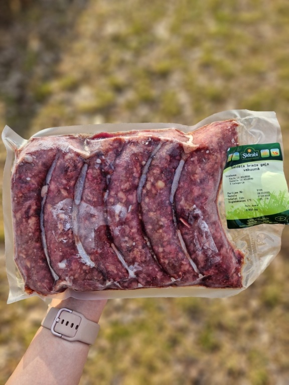 Brieža gaļa, teļa gaļa un šo gaļu atgriezumi.
