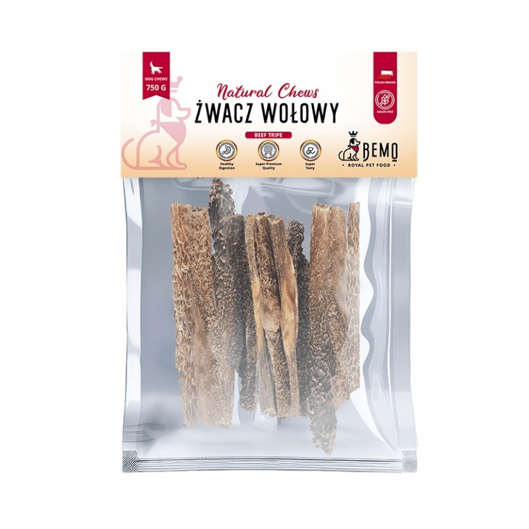Svaigi žāvēts 100 % liellopa kuņģis — dabīgs našķis suņiem. Produktā nav mākslīgu konservantu, krāsvielu vai garšas pastiprinātāju.