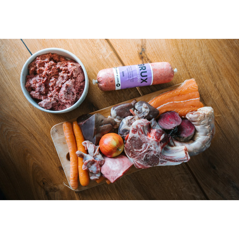 Brux Turkey/Lamb — это качественный сырой корм из свежей индейки и ягнёнка, созданный для того, чтобы поддерживать здоровье, энергию и отличное самочувствие вашей собаки каждый день.