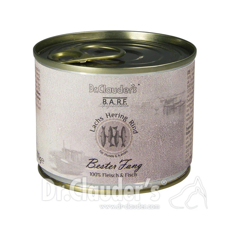 Дополнительный корм для собак и кошек — лосось, сельдь и говядина. Dr. Clauder’s «Bester Fang» с лососем, сельдью и говядиной — это идеальная основа для вкусного BARF-питания вашей собаки или кошки. 100% мяса и рыбы, без дополнительных витаминных и минеральных добавок, 100% немецкое качество.