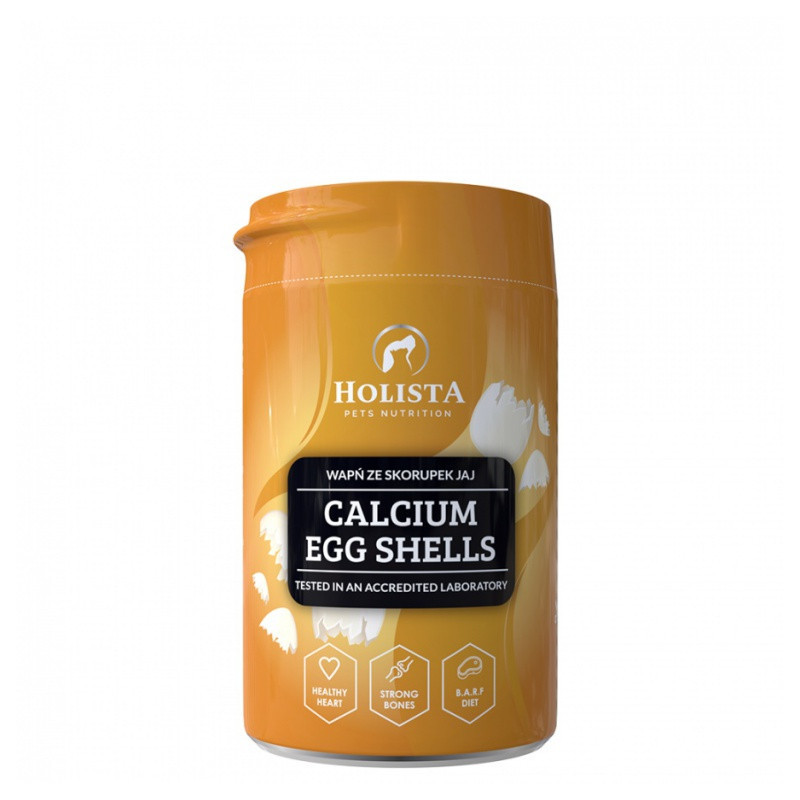Органическая добавка кальция, мука из куриной яичной скорлупы. Это незаменимая добавка для собак и кошек, которых кормят сырым или вареным мясом. Яичная скорлупа отлично подходит для балансировки избыточного фосфора в диете BARF, ограничивая при этом использование костей. Продукт не содержит синтетических добавок, антислеживателей и красителей.