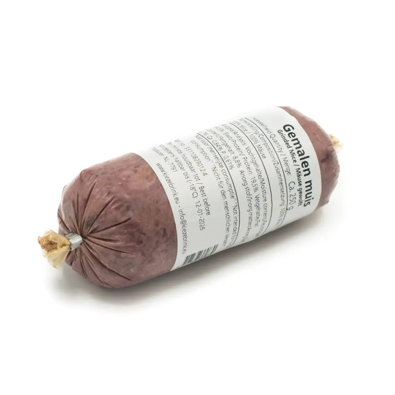 Kiezebrink KB BARF Mice Minced — это 100% натуральный продукт, изготовленный из цельных мышей. Продукт не подвергался никакой обработке, кроме измельчения, и не содержит наполнителей, злаков или искусственных добавок. Мыши являются естественной добычей для многих хищников, что делает этот корм наиболее биологически соответствующим выбором, особенно для кошек и рептилий, обеспечивая их питательными веществами так, как задумано природой.